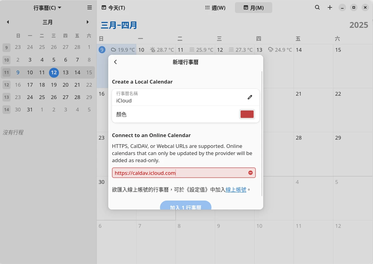 GNOME 47版本可以從GNOME行事曆新增iCloud行事曆。