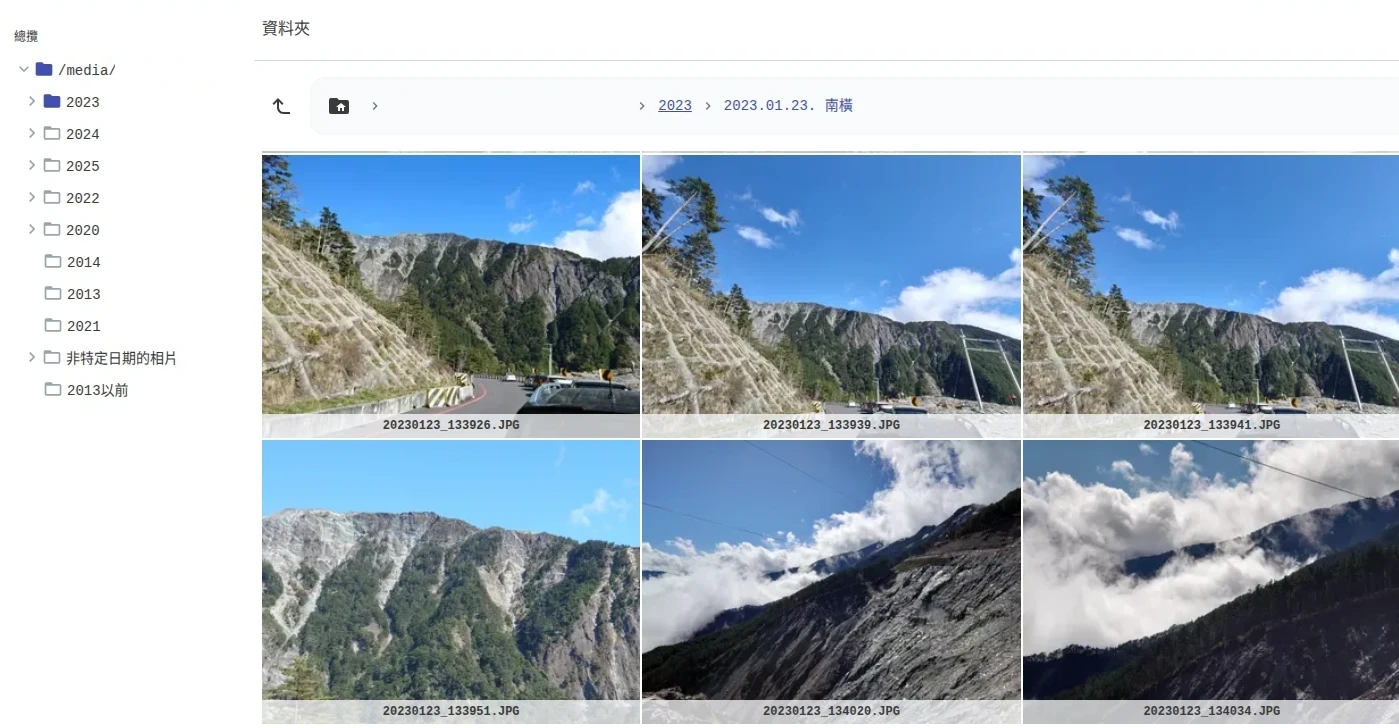 另外,只有選取備份的手機資料夾,才會跟伺服器的照片一起顯示在時間軸上。