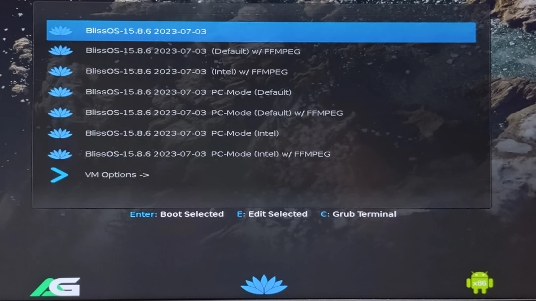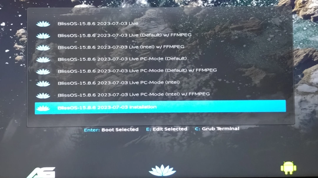 - 重開機,在UEFI選單選擇Bliss OS,開機