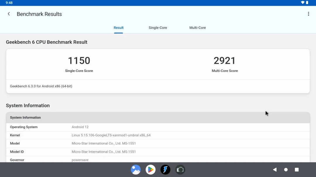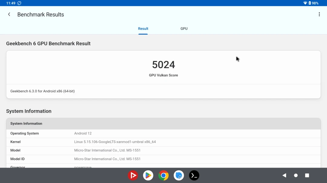至於風扇,即使執行跑分軟體也只有輕微動起來。Linux需要使用寫入EC的核心模組才能調整MSI風扇轉速,看起來沒救了。反正Android不玩遊戲的情況下是不怎麼吃效能啦。