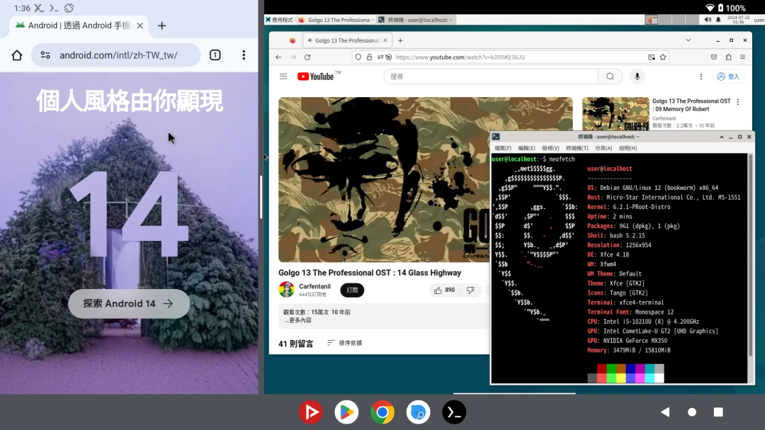 利用Android分割螢幕功能,同時執行Android的Chrome和Linux的Firefox