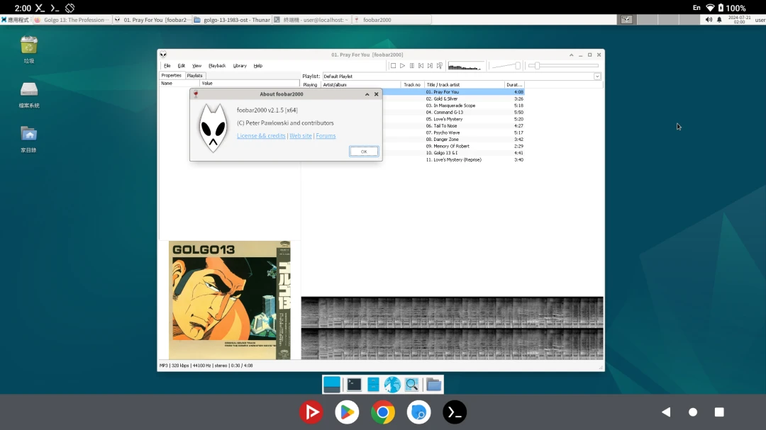 ChromeOS可以用Crostini跑Debian虛擬機,執行電腦版Linux程式。那Bliss OS當然也行啊!
