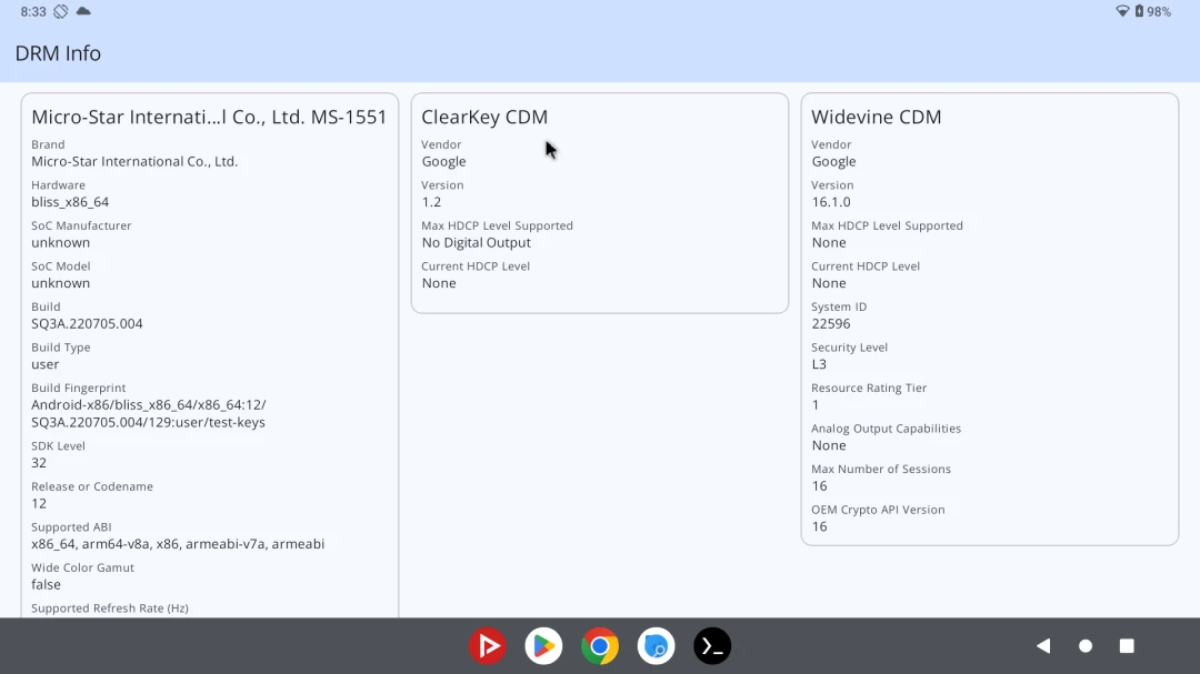 雖然系統內建Widevine,但DRM等級只有L3,所以不能看Netflix最高畫質。