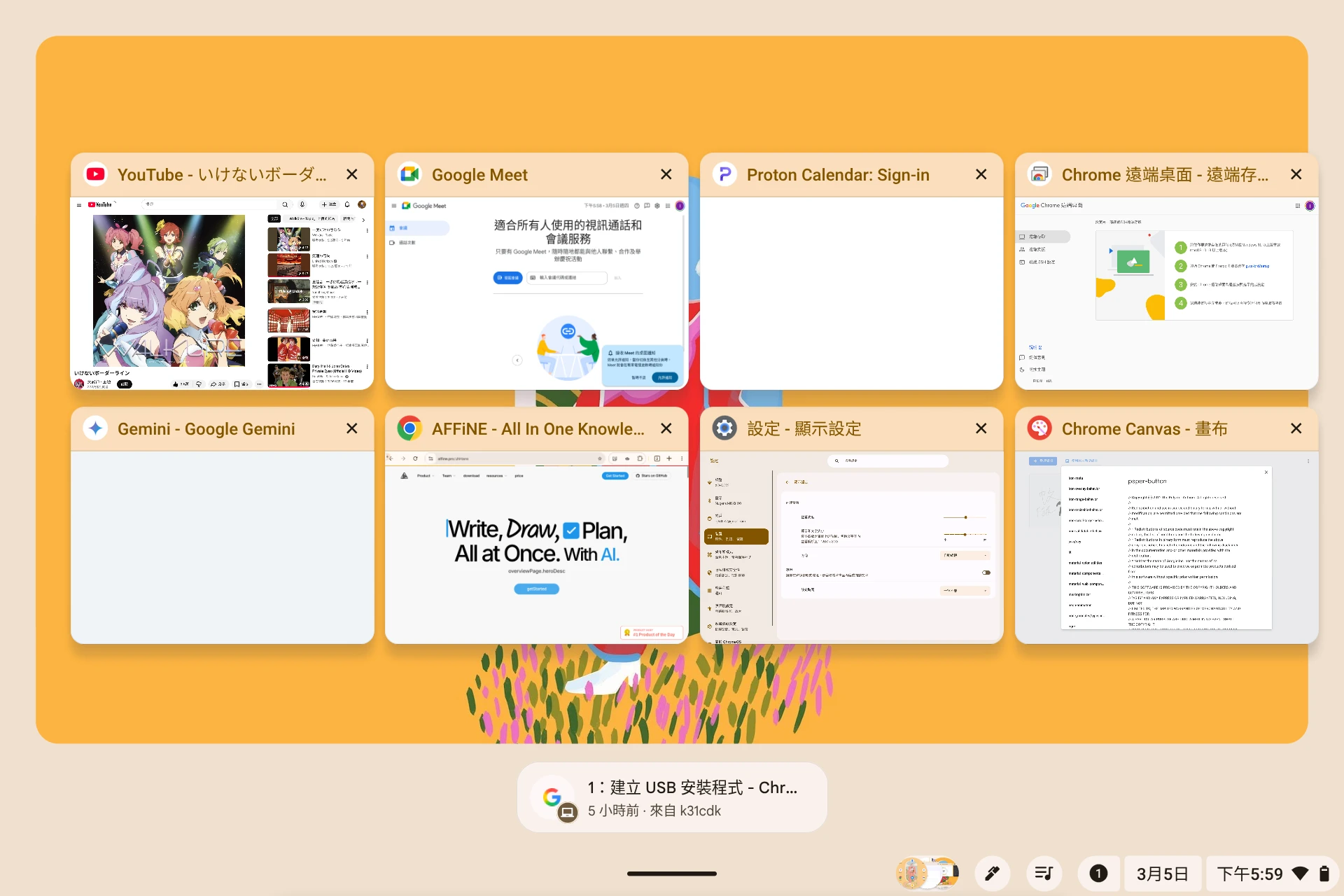 不過可能是Surface Go 2的CPU太弱的緣故,只要多工同時開著5個以上網頁,ChromeOS Flex系統動畫就會開始卡了。這個跟硬體的因素比較大。