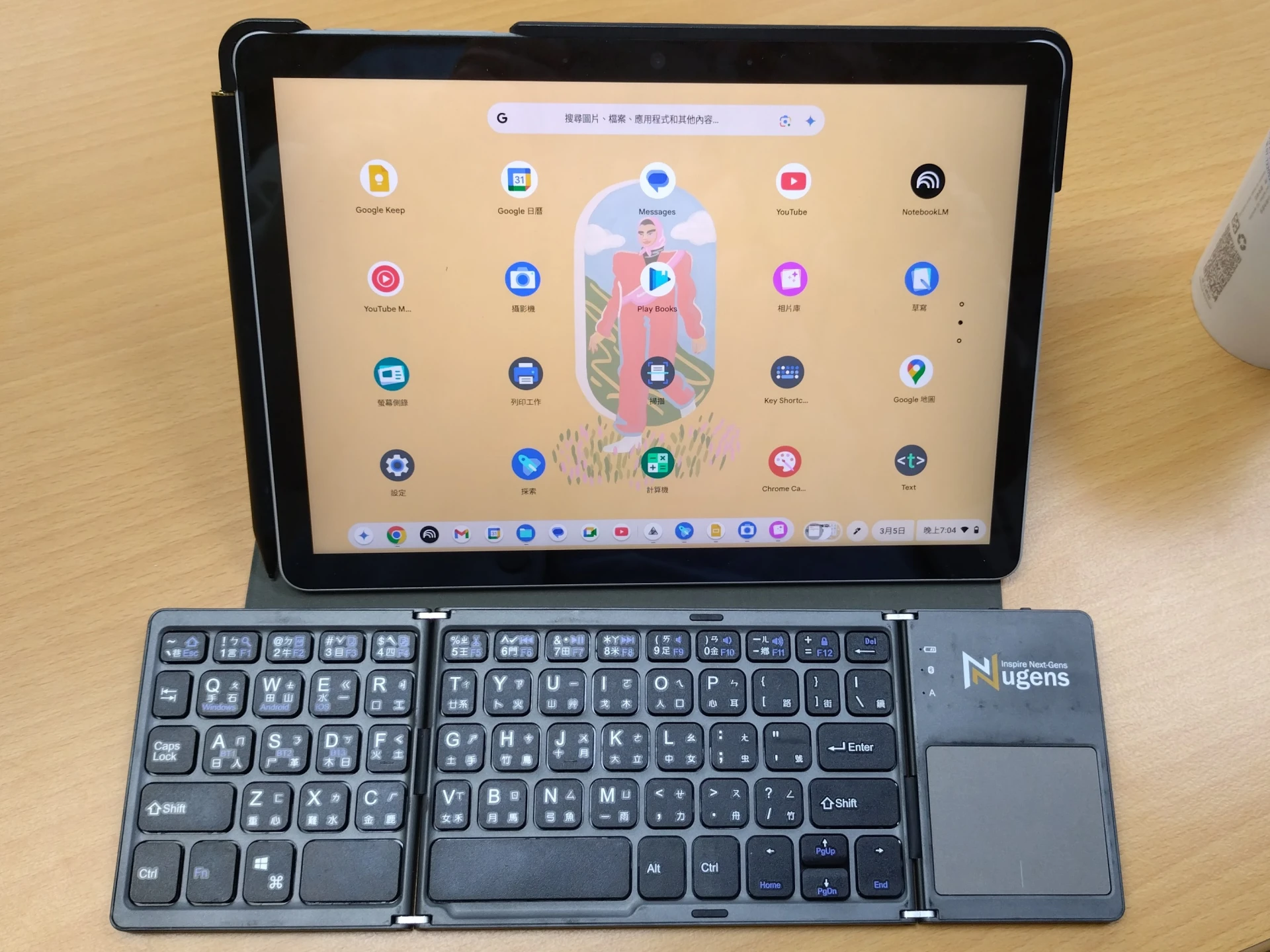 ChromeOS內建注音中文輸入法,不論是用觸控還是打字輸入都很直覺,尤其是觸控輸入法,就跟用Android的Gboard沒兩樣。系統會自動偵測有無接上鍵盤並在適當的時候顯示。