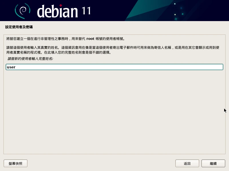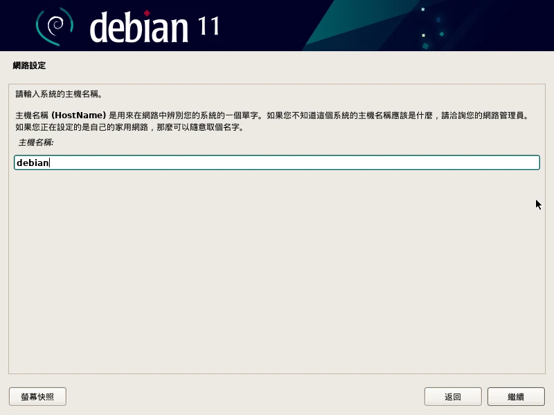 Debian的安裝界面還算直覺,不過它不會載入非自由的韌體,有些無線網路卡可能會無法啟動。在此建議先使用有線光纖網路安裝系統,Debian開機後會自動用DHCP連上網。
