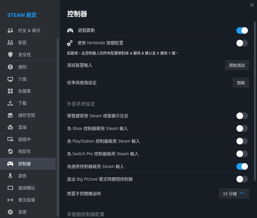 若有需求,Steam尚提供「Steam Input」的模擬輸入功能,可在設定 → 控制器區域進一步微調。