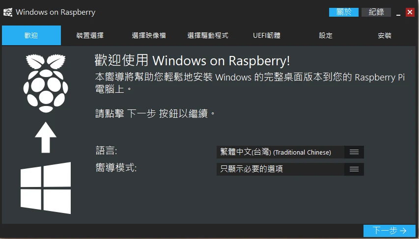 下載安裝器Windows on Raspberry Imager,解壓縮,執行