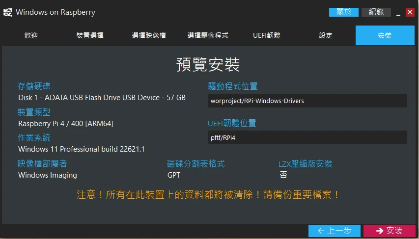 Raspberry Pi不是Microsoft官方支援的裝置,所有的相關程式都是WOR Project社群維護的。他們有維護給Raspberry Pi 3、Raspberry Pi 4、RK3588開發板使用的UEFI韌體。