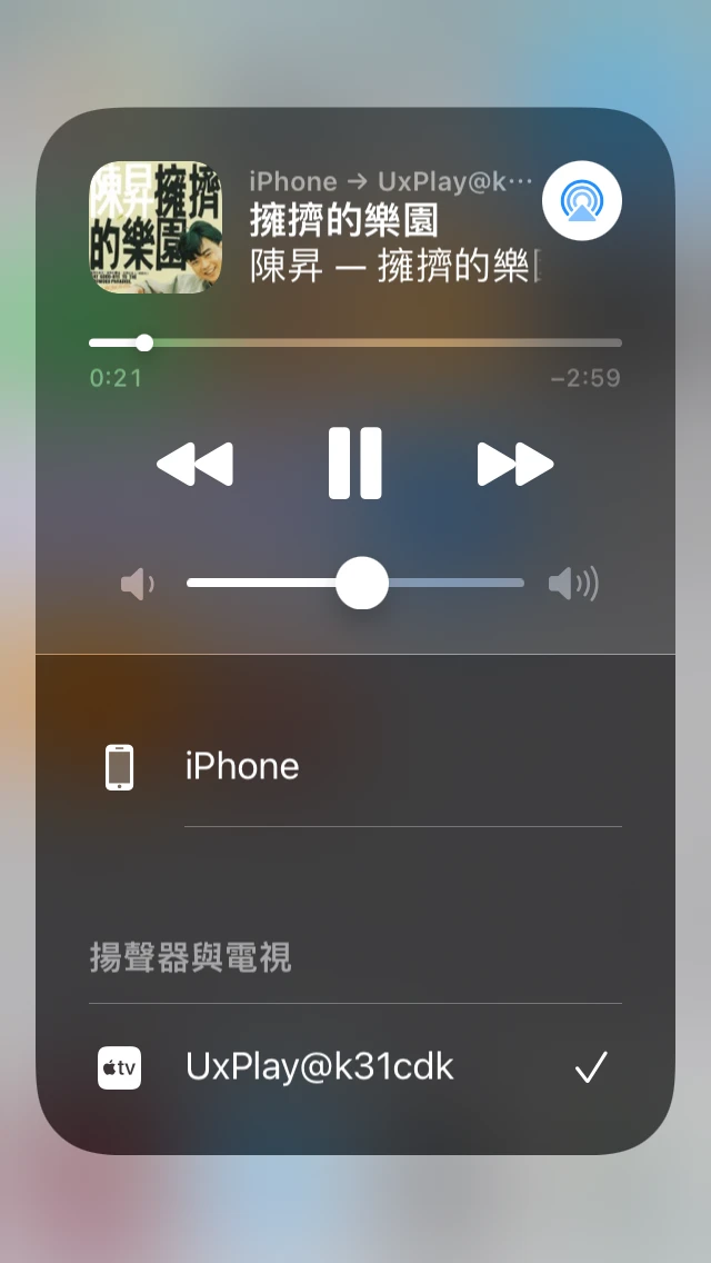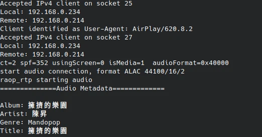 上面提到Uxplay可以不播放畫面,只串流純音樂。