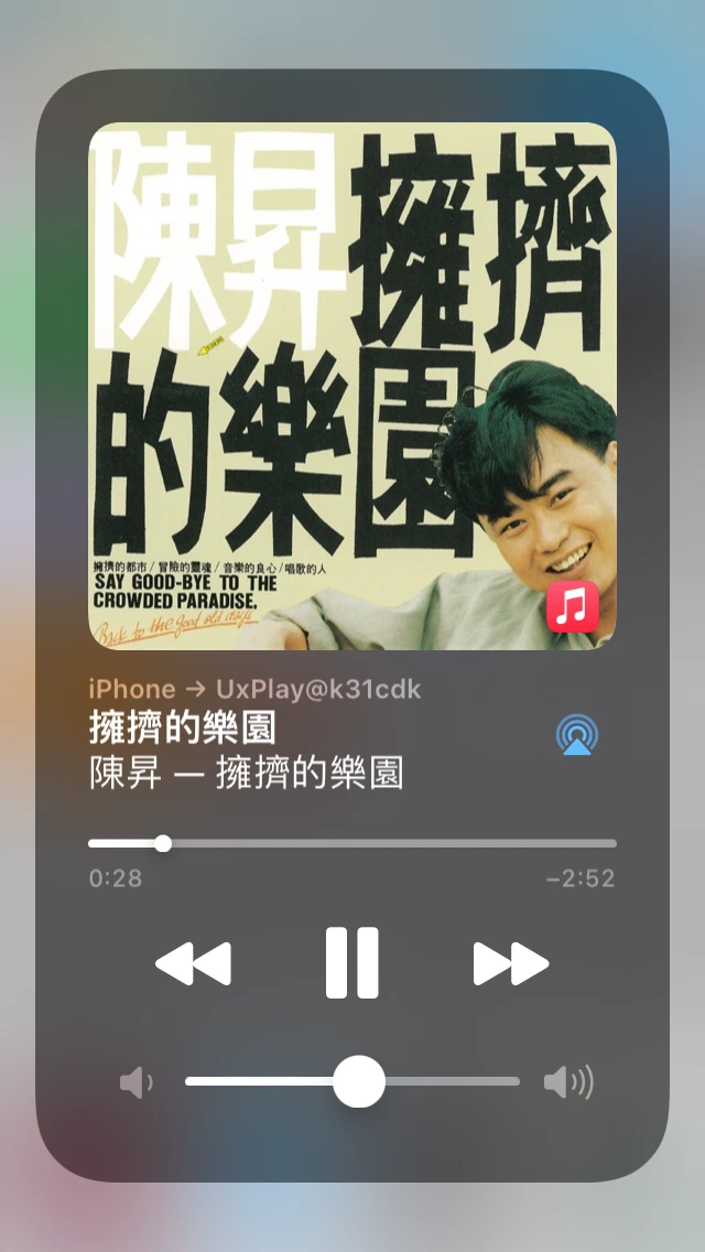 UxPlay也能用來播放純音訊串流,用電腦無線播放手機的音樂,例如Apple Music。