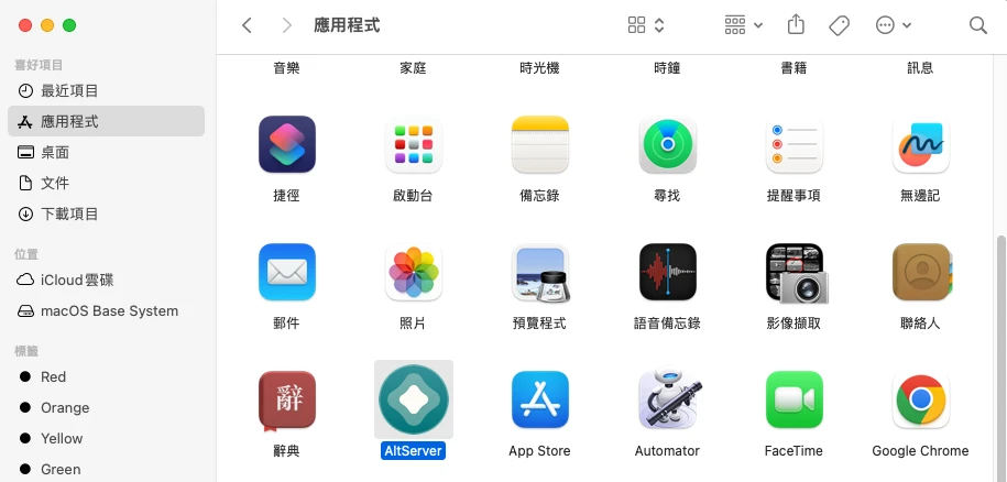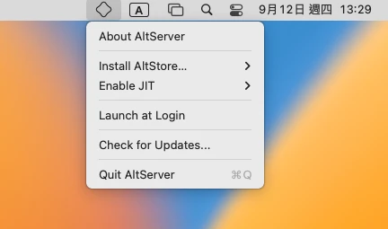 開啟macOS的應用程式列表,點選AltServer。之後會顯示在Mac右上角,點選