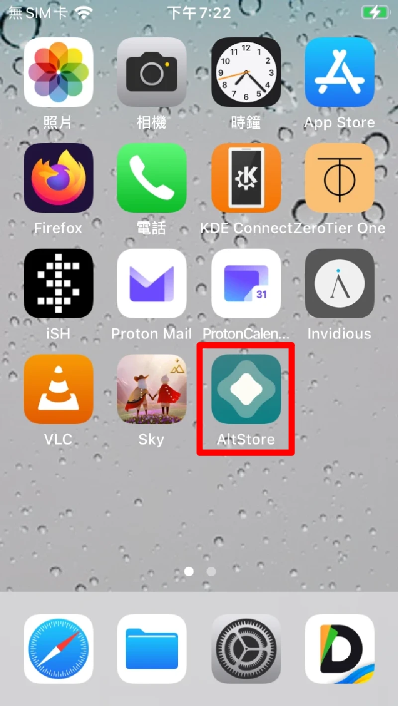 稍後iPhone的主畫面應該就會出現AltStore的綠色圖示,先不要開啟。