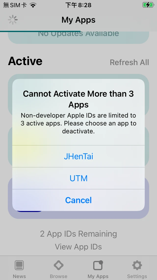 當您要安裝第3個APP的時候,AltStore會詢問您要將哪個舊的APP停用,讓位給新的APP。