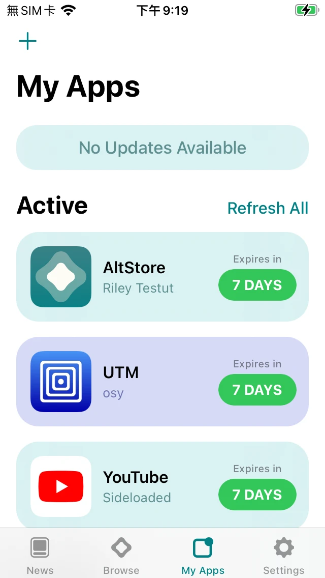 透過AltStore安裝的APP(包含AltStore本身)有7天簽名期限的限制,時間到就需要重簽。