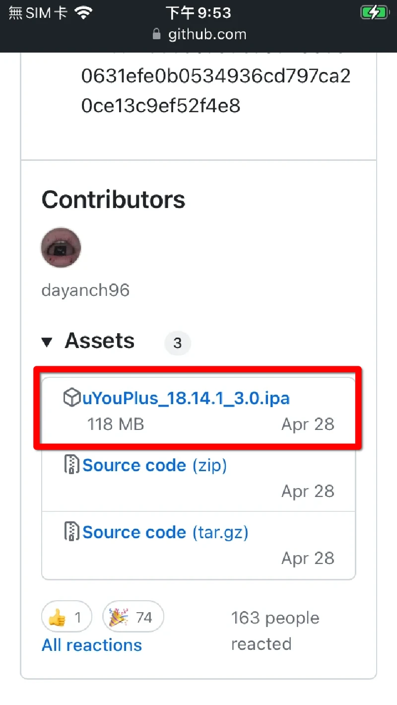 要安裝APP必須要有IPA檔,例如Youtube去廣告的uYouPlus要用iPhone到Github下載IPA: