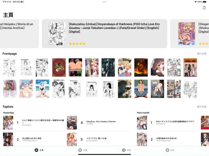 我們來看一下EhPanda的主要功能。EhPanda的主畫面經過重新排版,會在最上方顯示最新上傳的同人誌。