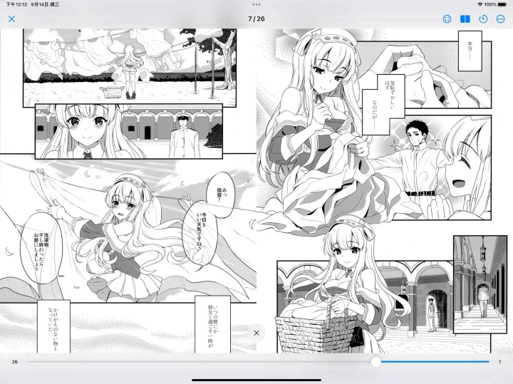 接下來是同人誌的閱讀介面,在iPad上看起來就像是App Store的設計語言一樣,因此同人誌預覽是從螢幕中間彈出來的。有啟用中文化標籤就能方便查看同人誌的作者資訊,點選標籤可進行相關搜尋。