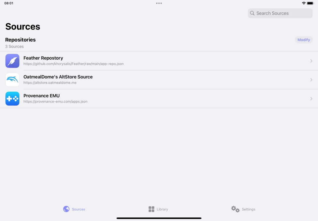 Feather支援AltStore的套件庫,你可以從裡面下載IPA。