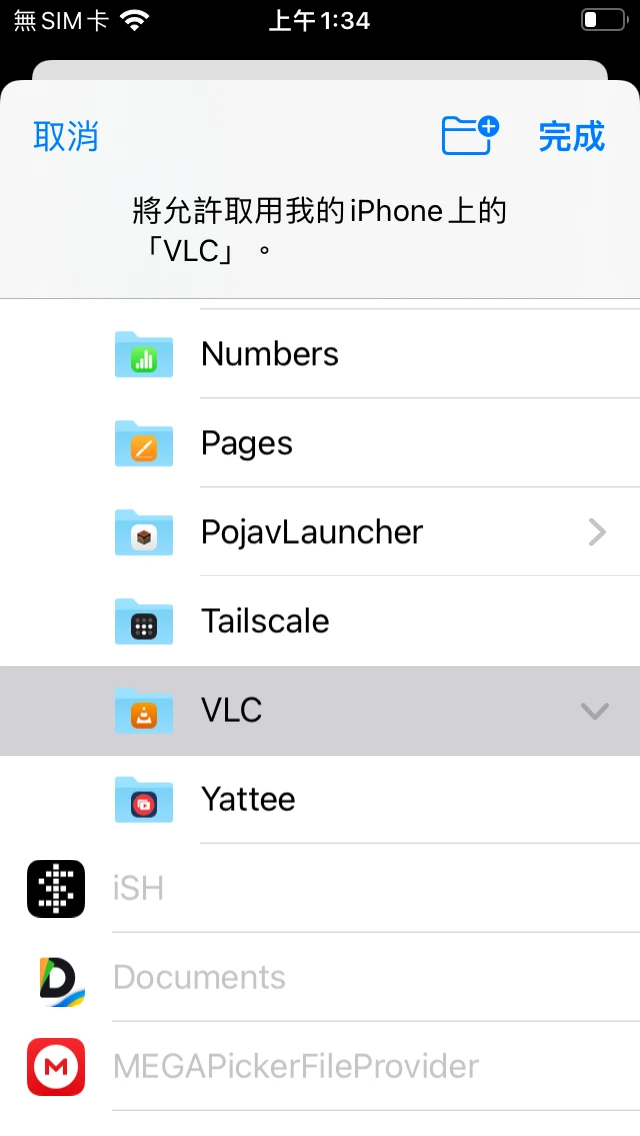 如果APP有支援檔案分享功能,那麼你可以用mount -t ios 掛載點名稱 /mnt指令,將APP分享的資料夾掛載給iSH Shell讀取。比如掛載VLC的資料夾,讀取影片檔: