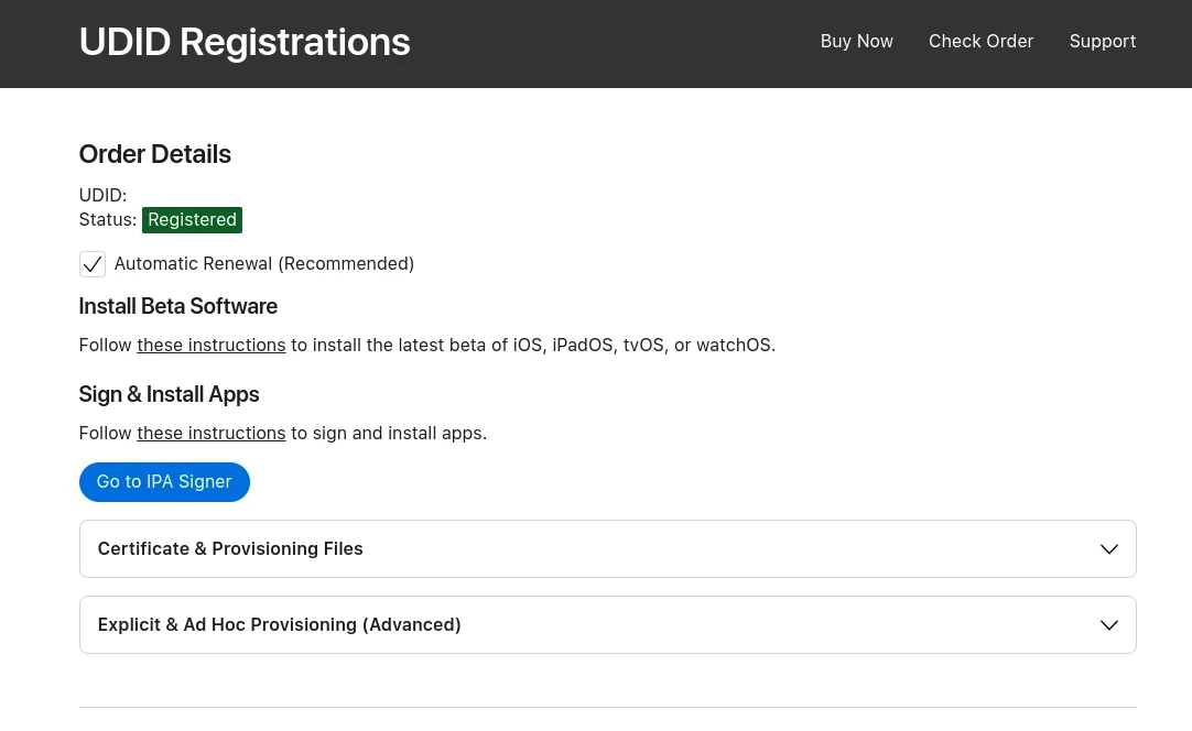 隨後你就能在Check Order頁面用UDID查詢訂單狀態。