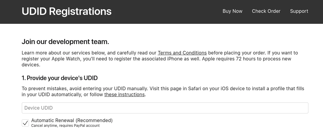 到UDID Registrations官方網站:https://www.udidregistrations.com,點選右上角的Buy Now