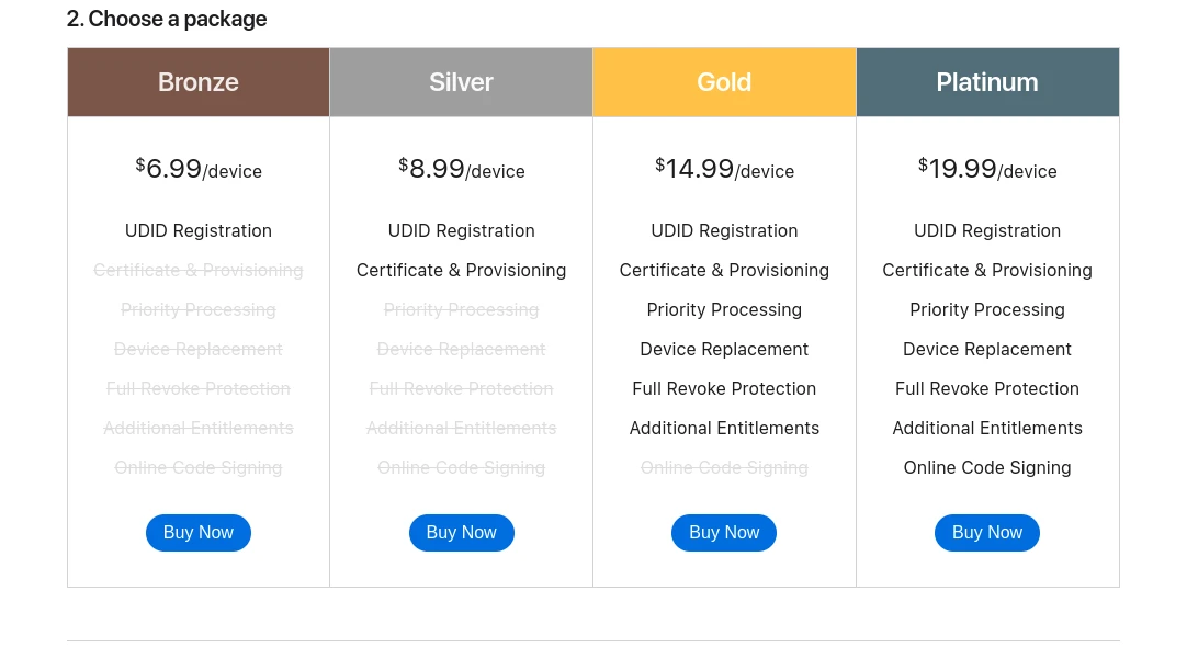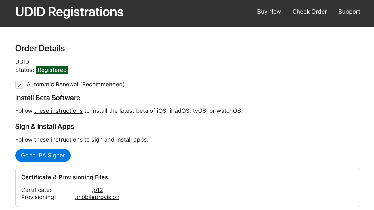 所以我選擇販售企業開發者憑證的第三方簽名服務:「UDID Registrations」,該公司從2013年就存在了(我並沒有收錢業配),從Reddit社群的評價來看,這家公司的服務應該是安全的。跟其他販售企業開發者憑證的網站比起來,UDID Registration價格算是中等,一部裝置一年只要20美元。取得憑證之後就能用他們的服務給IPA簽名,或者拿去其他程式簽名。