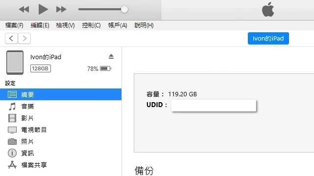 Windows和macOS用戶,請將iOS裝置插到電腦,點選iTunes → 關於裝置,點一下序列號,查詢裝置的UDID數值。至於Linux用戶請用libimobiledevice指令查詢UDID。