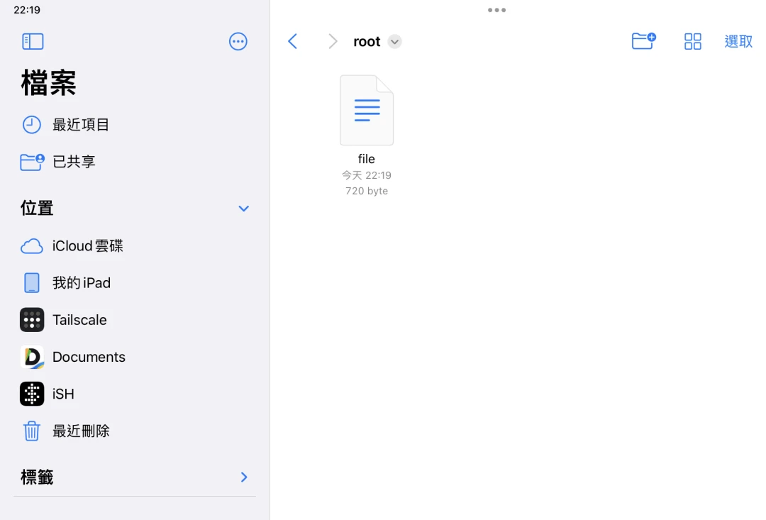 - 若要將iSH Shell收到的檔案搬移到其他APP,開啟「檔案APP」,找到iSH Shell的