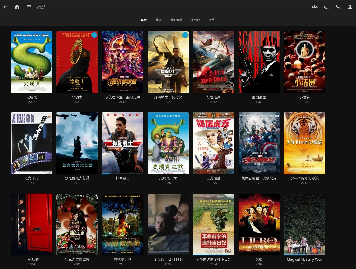 Jellyfin會掃描硬碟影片資料夾,嘗試從TheMovieDB抓取影片的中繼資料,並顯示一個多媒體中心的面板讓你瀏覽。這樣比起單純以資料夾形式瀏覽影片舒服多了吧。