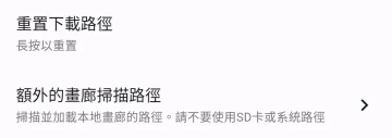 /Picture/EhViewer/),這樣JHentai才能存取。到JHenTai設定 → 下載設定 → 點選額外的畫廊掃描路徑,新增EhViewer漫畫的路徑。在這裡可以多個不同路徑的漫畫來源。