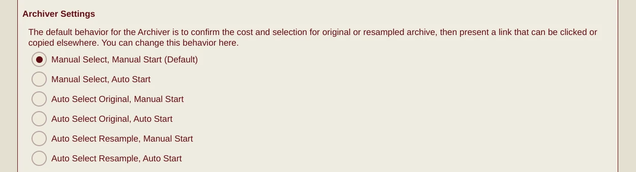 請先在E-hentai網頁版的的My Home → Archiver Settings將其設定為Manual Select, manual start才可下載。