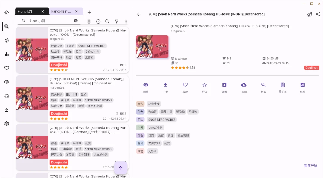 - 支援電腦和手機系統,可當作PC版EhViewer使用
