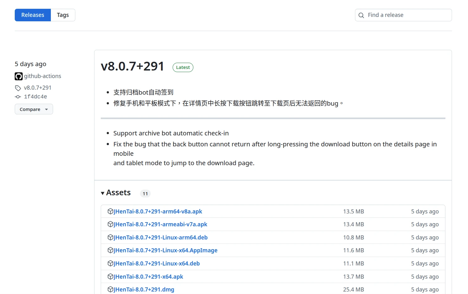 在Release頁面找到Latest標籤的區塊,點選Assets,依照你的作業系統下載安裝檔。