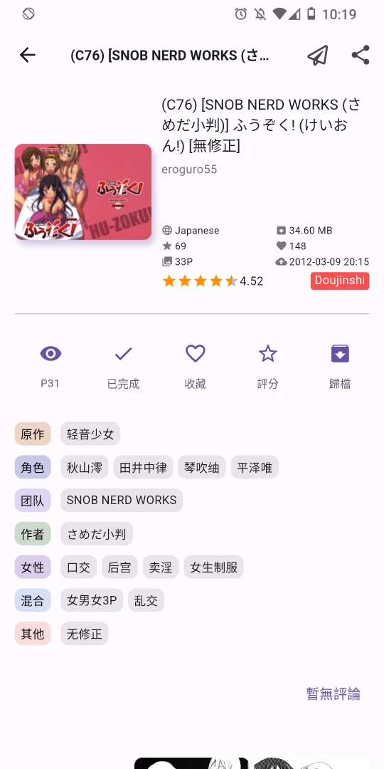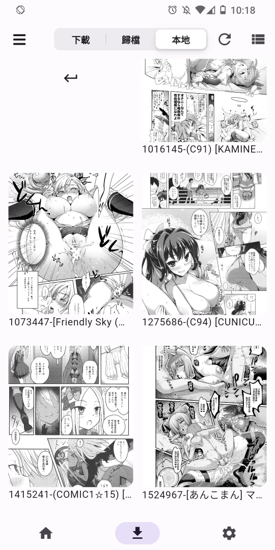 下載後可以自行於本機設定分類。點縮圖開啟漫畫,點標題進入畫廊資訊頁面。