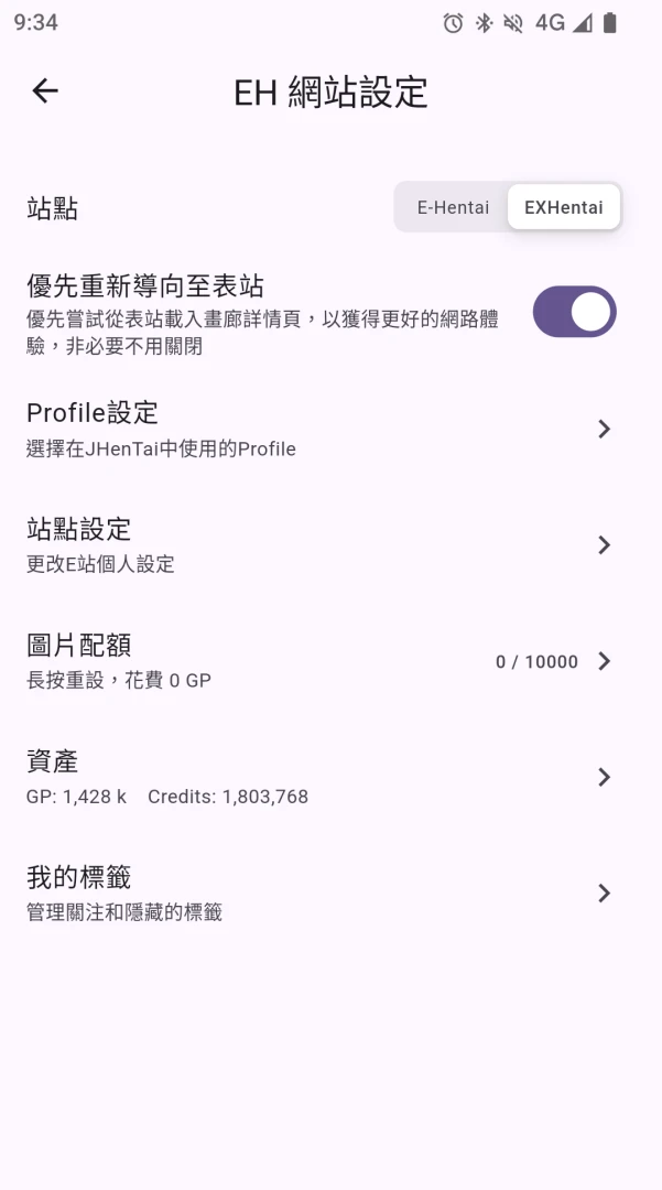 在設定 → 帳戶,登入E-hentai帳號。然後點選設定 → EH,站點選取使用Ex-hentai資源。