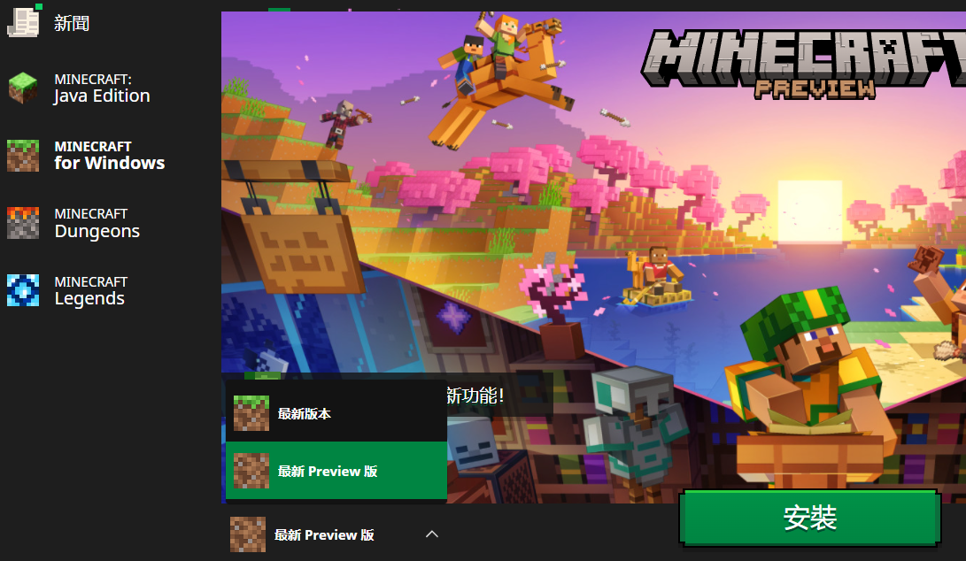 切換到Minecraft for Windows頁面,選取下載「最新Preview版」。你可以在這個介面切換正式版與測試版。