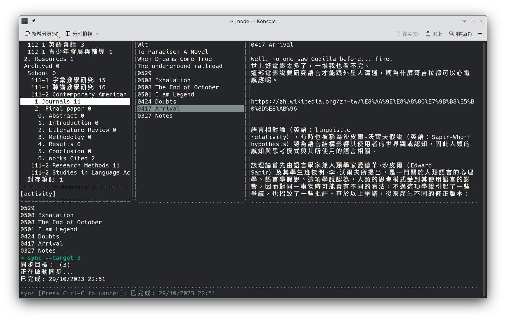 開源筆記軟體Joplin有提供命令行版的操作界面,適合不喜歡臃腫Electron、偏好純文字界面的用戶使用。
