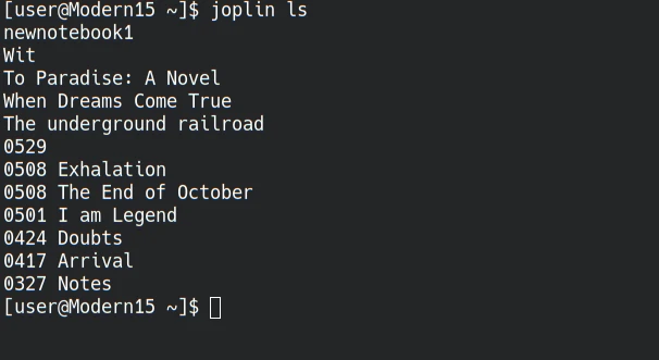 當您要用指令操作記事本內容的時候,Joplin預設選取的是您上次離開時最後開啟的記事本。用joplin ls指令便可確認。