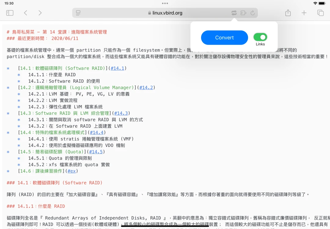 iOS則是Safari的延伸功能ToMarkdown,內建的伺服器似乎有問題,建議改為https://urltomarkdown.com