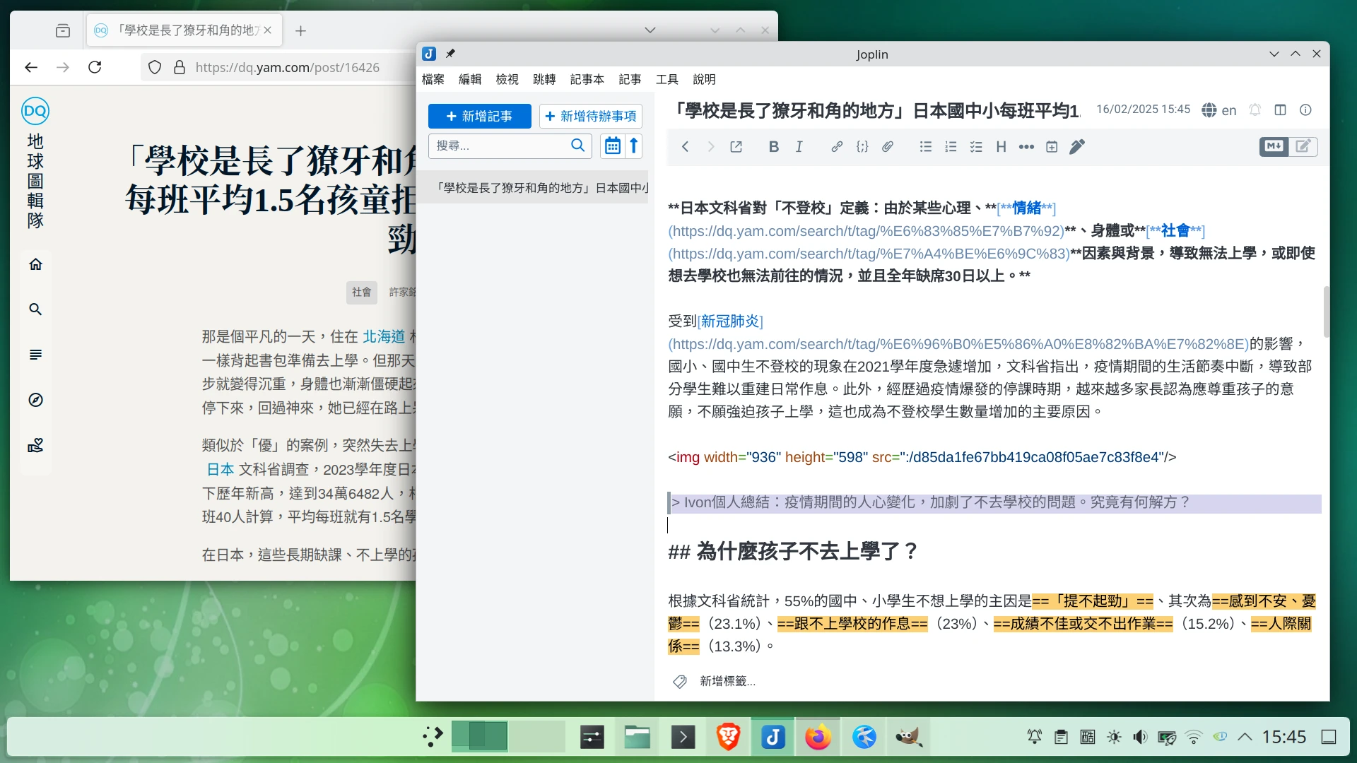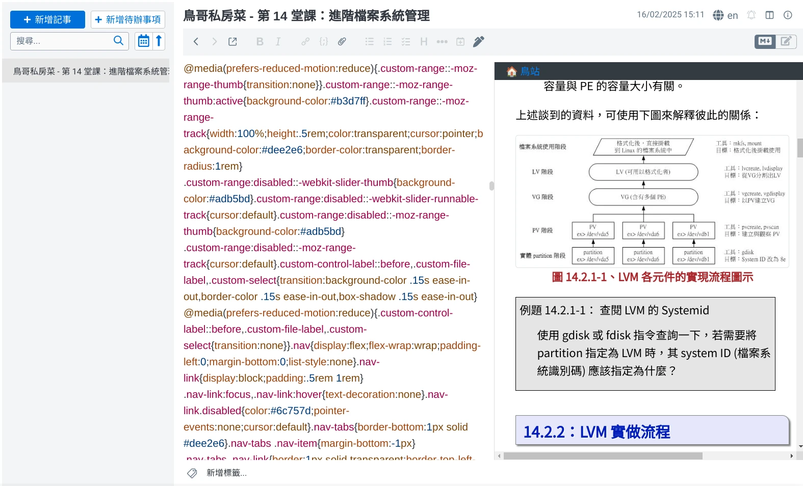 在Joplin裡面進一步編輯網頁內容,並加上註解。利用Joplin的標籤系統給蒐集到的資料分類。