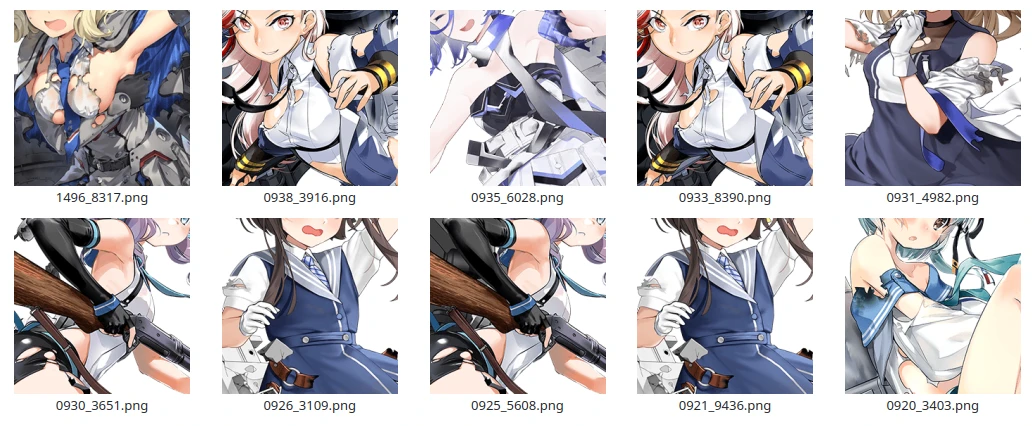 kcs2/resources/ship/character_up_dmg/複製出艦娘的半身像(大破立繪更容易露出胸部,季節限定立繪可忽略) 通常圖片是按照時間排序的。