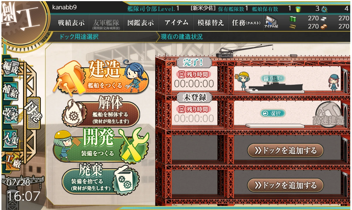 按照指示,點選左邊的「工廠」按鈕,按右邊的按鈕,建造一艘新船,再按Get獲得。