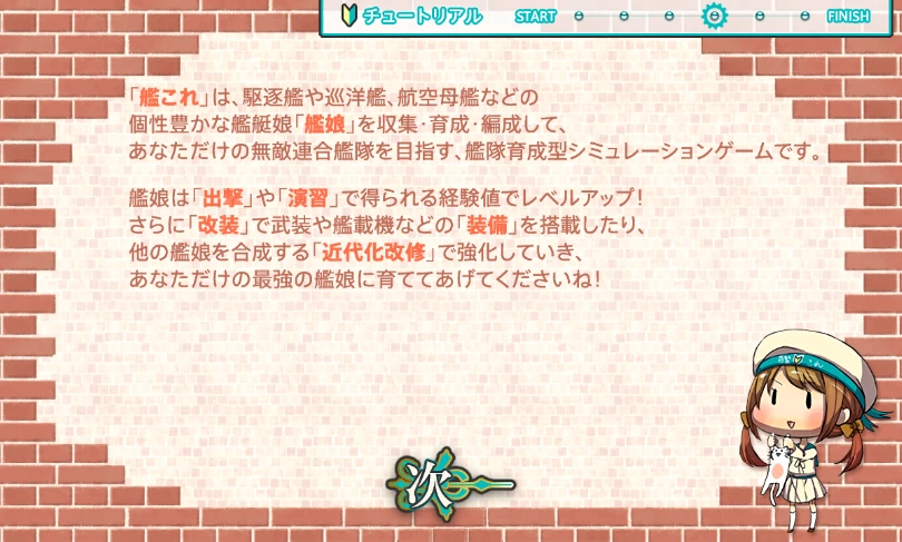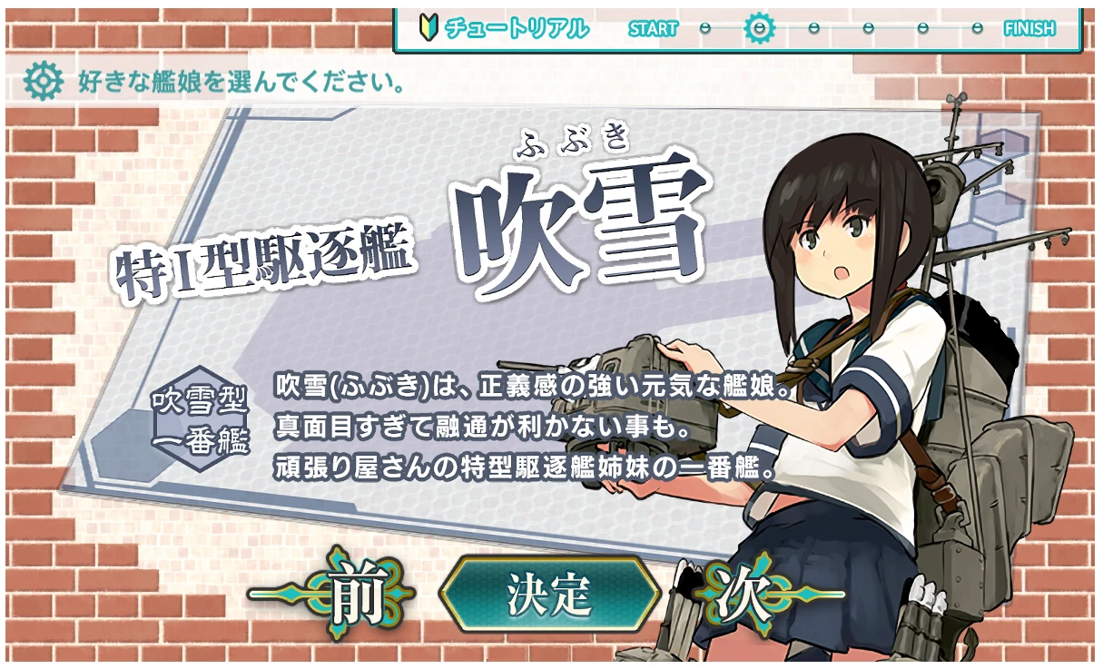 選擇喜歡的初始艦娘,選誰都沒差,以後遊戲都能得到。按「前」和「次」可以切換不同的艦娘。