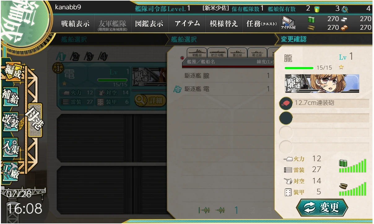 回到母港,進入「編成」頁面,把新造的艦娘編入
