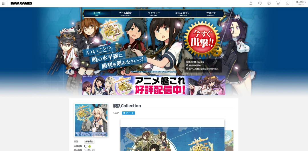 艦隊Collection遊戲平台位於DMM網站,現在艦隊Collection已不像以前需要抽籤排隊了。