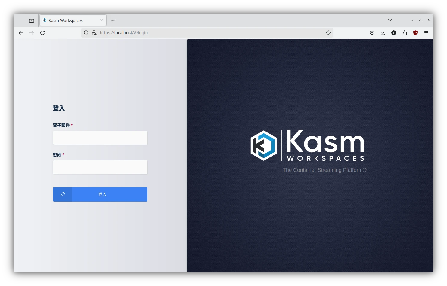https://Linux伺服器IP:443,使用管理員帳號admin@kasm.local登入後台。
