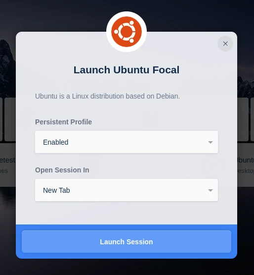 或者,掛載Persistent Profile,這樣每個工作階段的資料就會保存下來,資料儲存在/mnt/kasm_profiles。之後啟動工作階段就有「Persistent Profile」選項可用。
