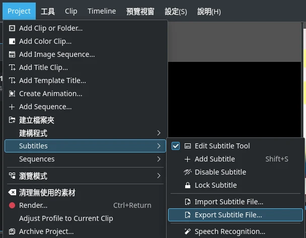 Kdenlive支援匯入srt字幕檔,因此用其他工具處理字幕後再匯入Kdenlive編輯也是可以的。