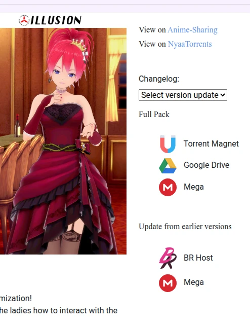 - 到BetterRepack官網按"Koikatsu"找載點,作者有提供Mega與Google Drive免空,按Full Pack下面的連結下載。將連結裡面的分割壓縮檔全部下載。